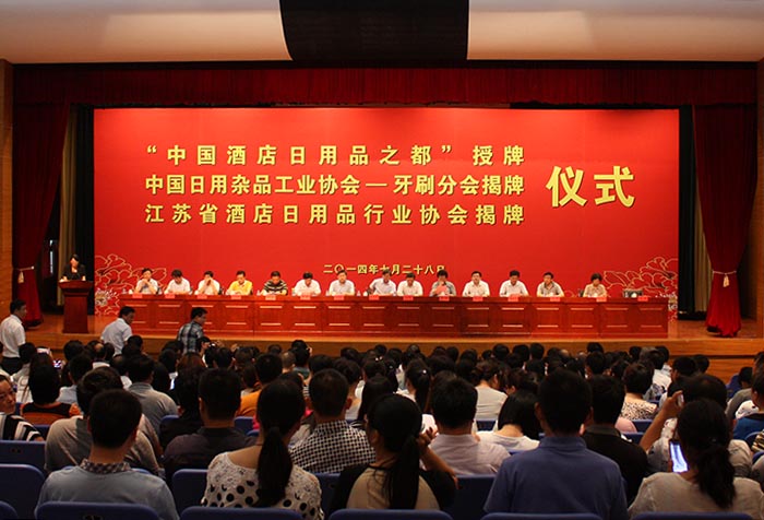 2014年7月28日上午10時30分,在省經(jīng)信委、民政廳的重視和指導(dǎo)下,在市、區(qū)、鎮(zhèn)三級政府及相關(guān)職能部門的關(guān)心和支持下“中國酒店日用品之都”授牌