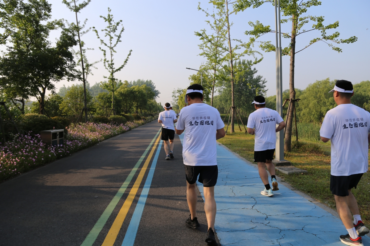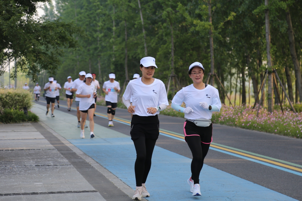 活動(dòng)當(dāng)天,清晨的陽(yáng)光徐徐灑下,伴隨著微涼的清風(fēng),正是適合跑步的好天氣。華住集團(tuán)人員和兩面針江蘇公司人員穿著統(tǒng)一的定制服裝,在教練的帶領(lǐng)下開(kāi)始跑前熱身,現(xiàn)場(chǎng)氣氛已經(jīng)被渲染得熱烈起來(lái)。